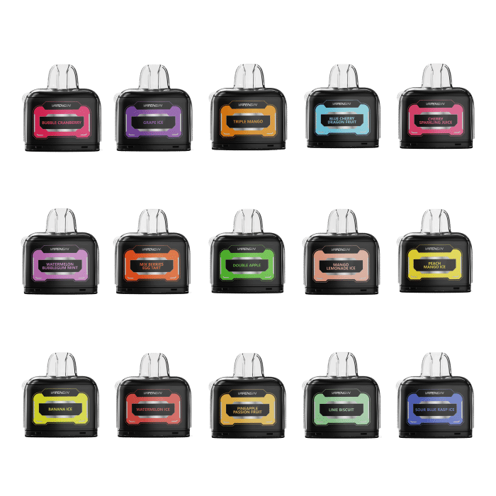 Flavors: Cool Mint, Pineapple Strawberry Mint, Watermelon Mango, Miami Mint, Pineapple passion fruit, Watermelon Ice, Apple Strawberry Kiwi, Grape bull Ice, Peach Mango Watermelon, Kiwi Berry Ice, Mango Lemonade Ice, Mango Strawberry Lemonade, Strawberry Kiwi Fruit, Caramel Tobacco, Cherry Lemon Peach, Melon Cherry Ice, Watermelon Bubblegum Mint, Sakura Grape, Bubble Cranberry, Cherry Sparkling Juice, Black Ice, Triple Mango, Sour Blue Rasp Ice, Grape Ice, Triple Berry Ice, Raspberry Watermelon, Watermelon Ice, iwi Passion Fruit Guava